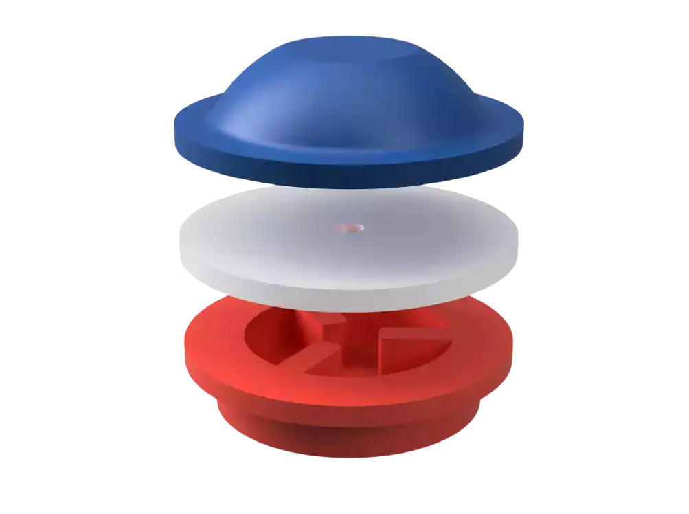 Les tuyères (couche centrale) isolent les deux types d'alvéoles. Avec des trous en forme conique, la tuyère permet une parfaite compression et détente de l'air.